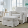 Traditionally styled this Swivel Glider chair features a heavily cushioned pillow back and reversible, banded seat cushion. The large, rolled arms are accented with cording, dressing up this beautiful chair. The look is finished off with a slightly taller skirt. It is also available as a stationary Club Chair. Put your feet up with the matching glide ottoman.