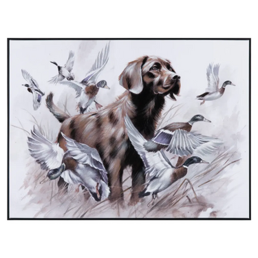 Duck Hunt showcases a playful scene of a dog hunting ducks, capturing the thrill and excitement of the hunt. The lively design adds a fun, dynamic element to any space.