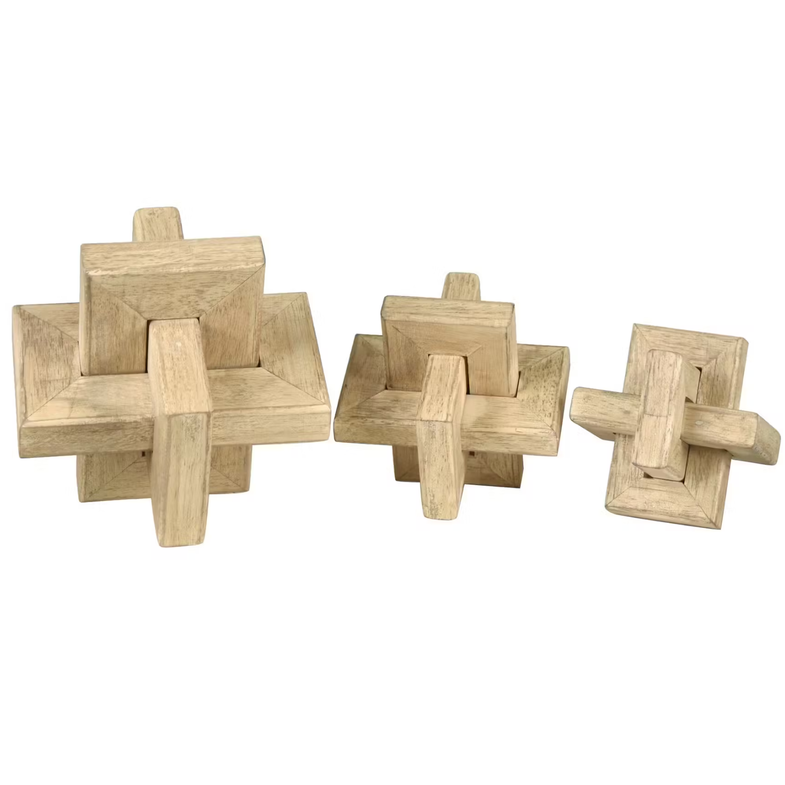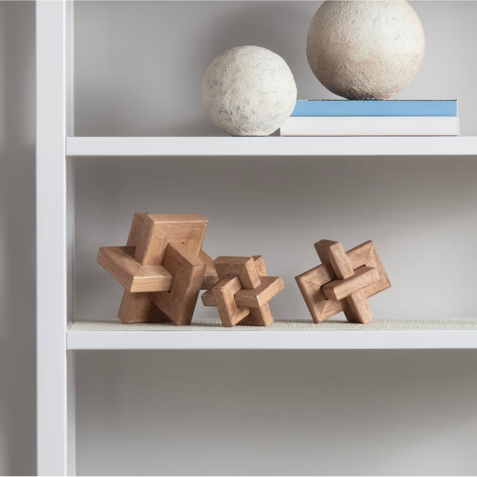 Elevate your space with the Kendall Sculptural Objects. This set of three wooden pieces offers versatility, ideal for showcasing together or separately. Their modern design adds visual intrigue and contemporary charm to any room, making them a stylish accent for your home.
