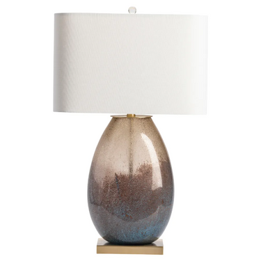 The Crestview Collection Noah Table Lamp brings an elegant, smoky look to your home. The ombre design of dark to light blue on oval-shaped glass body makes this transitional piece the perfect backdrop for any space. This lamp sits atop an antique brass base. The rectangular, linen shade has rounded corners and a soft white coloring that will glow when the lamp is on.