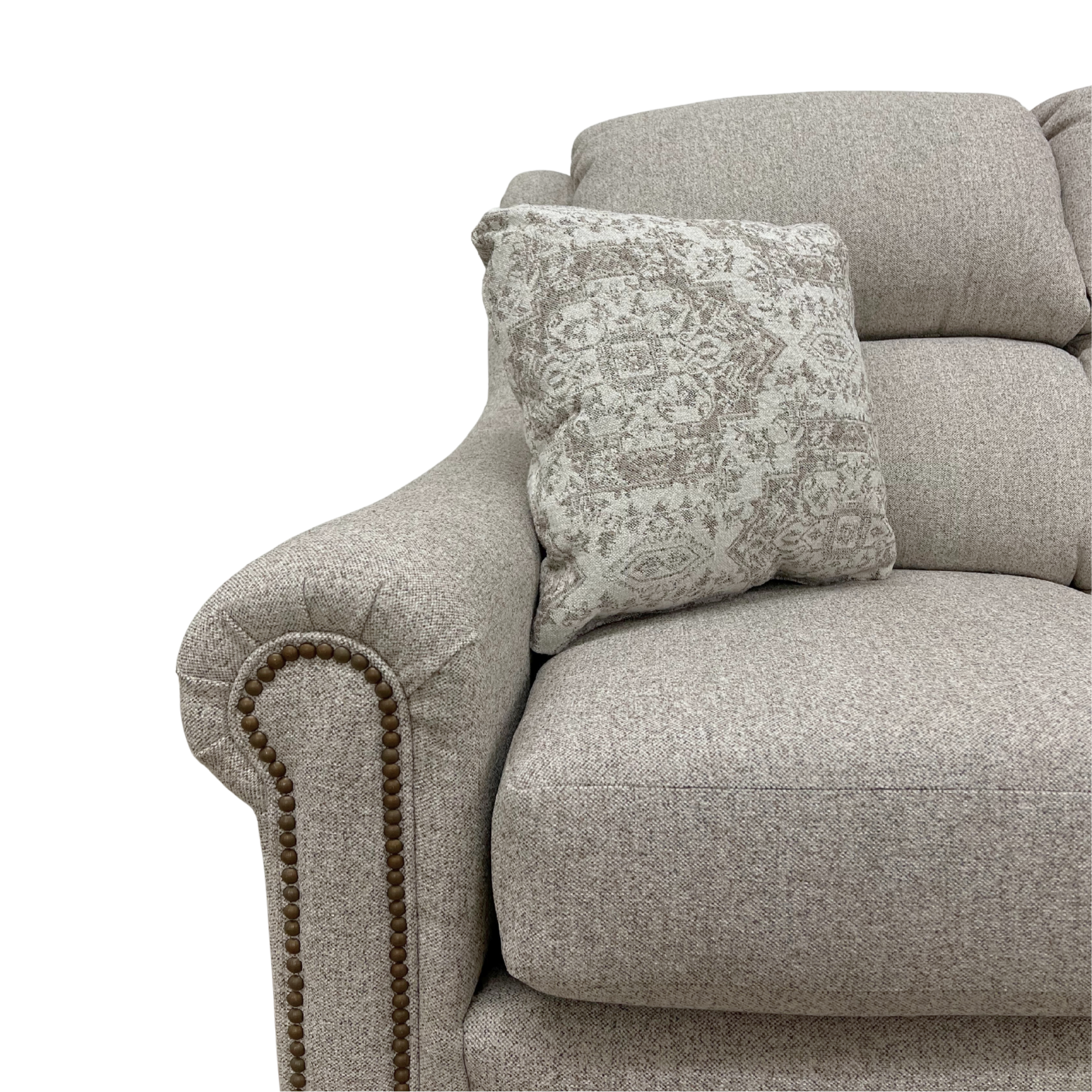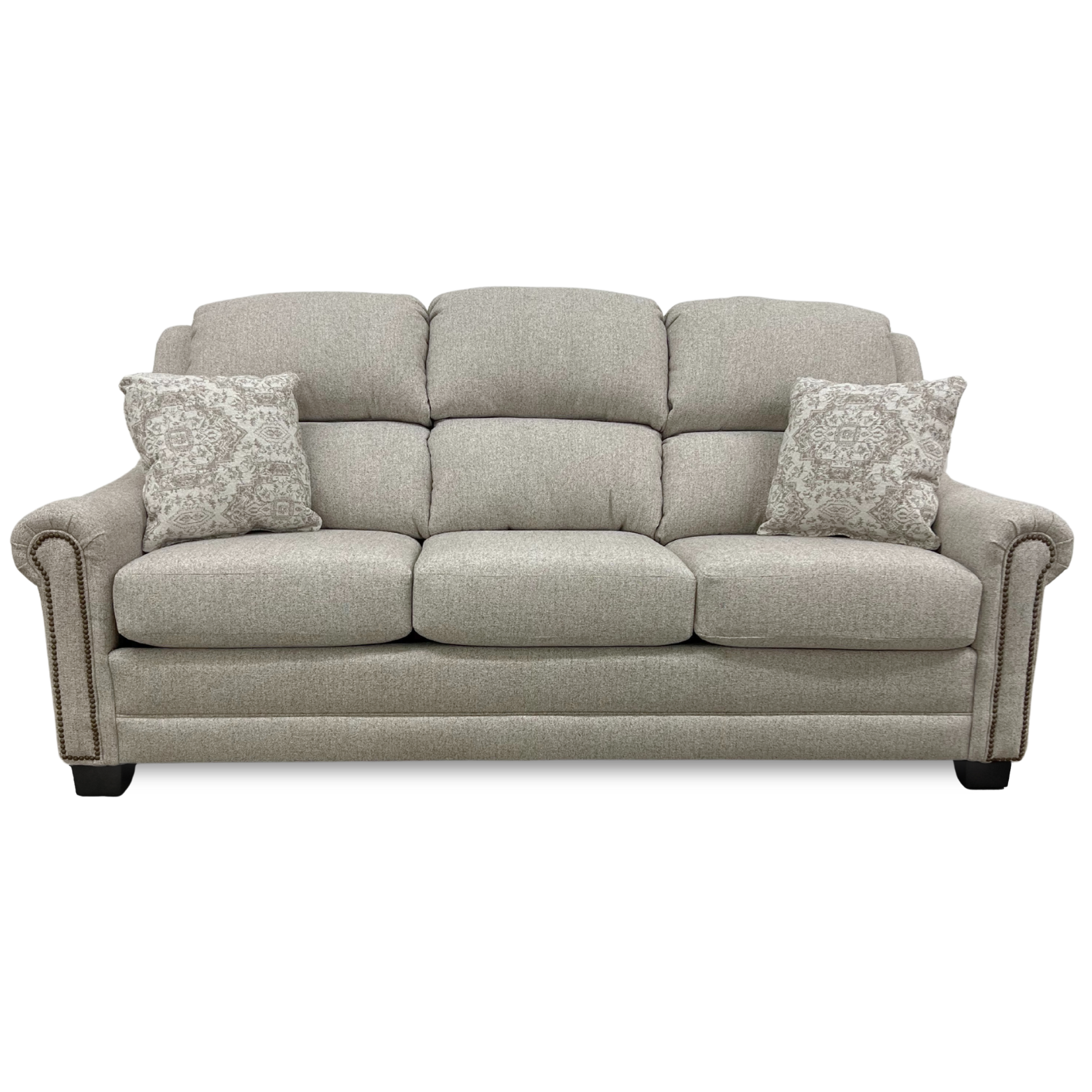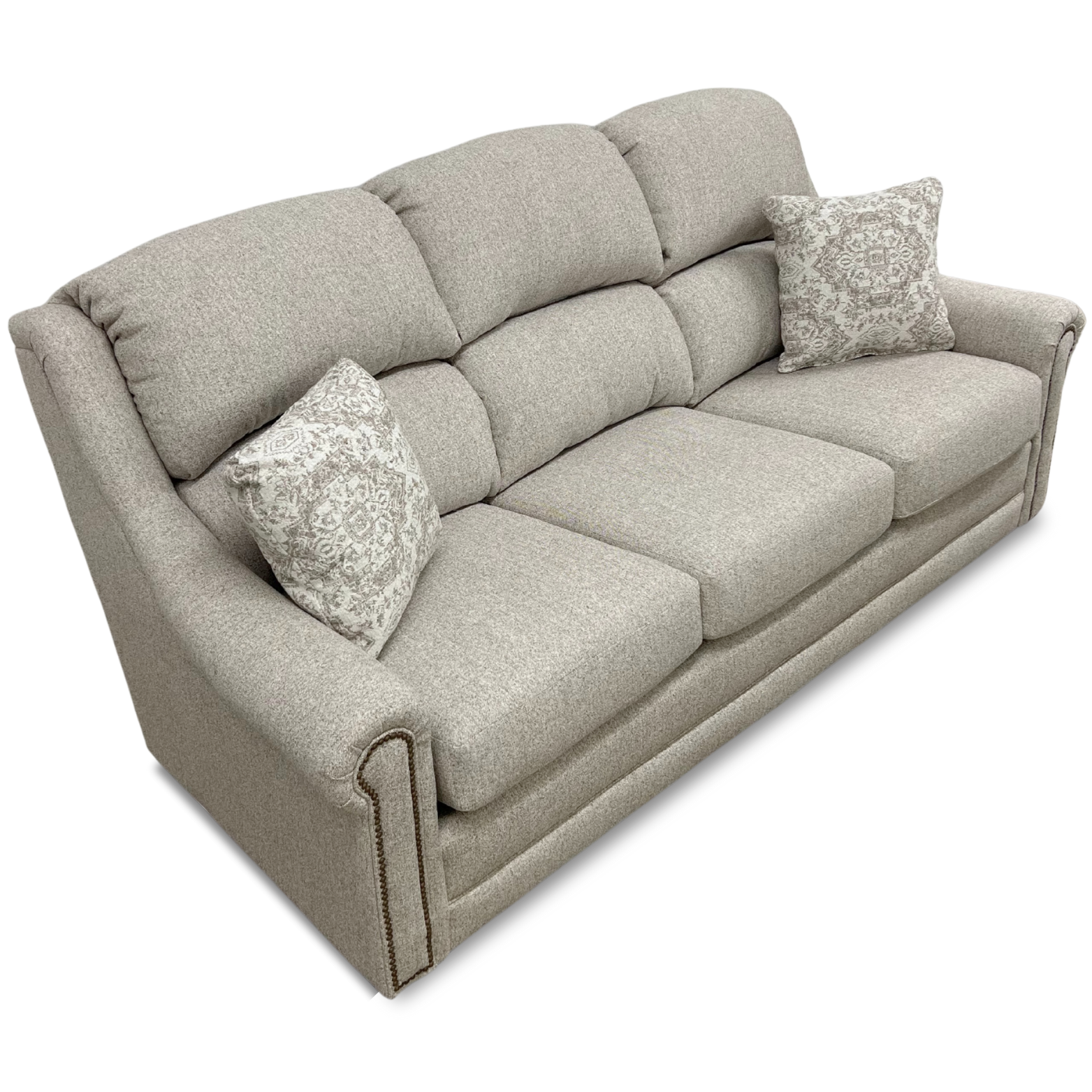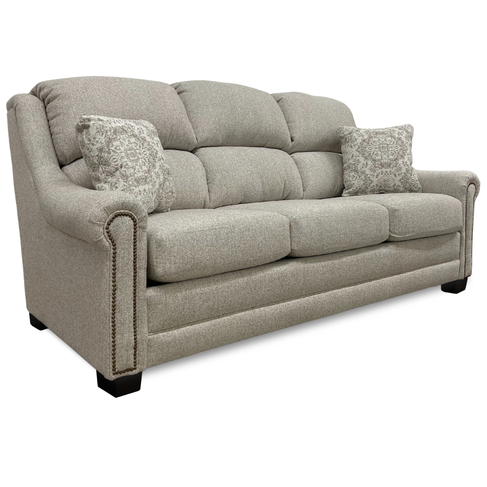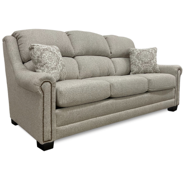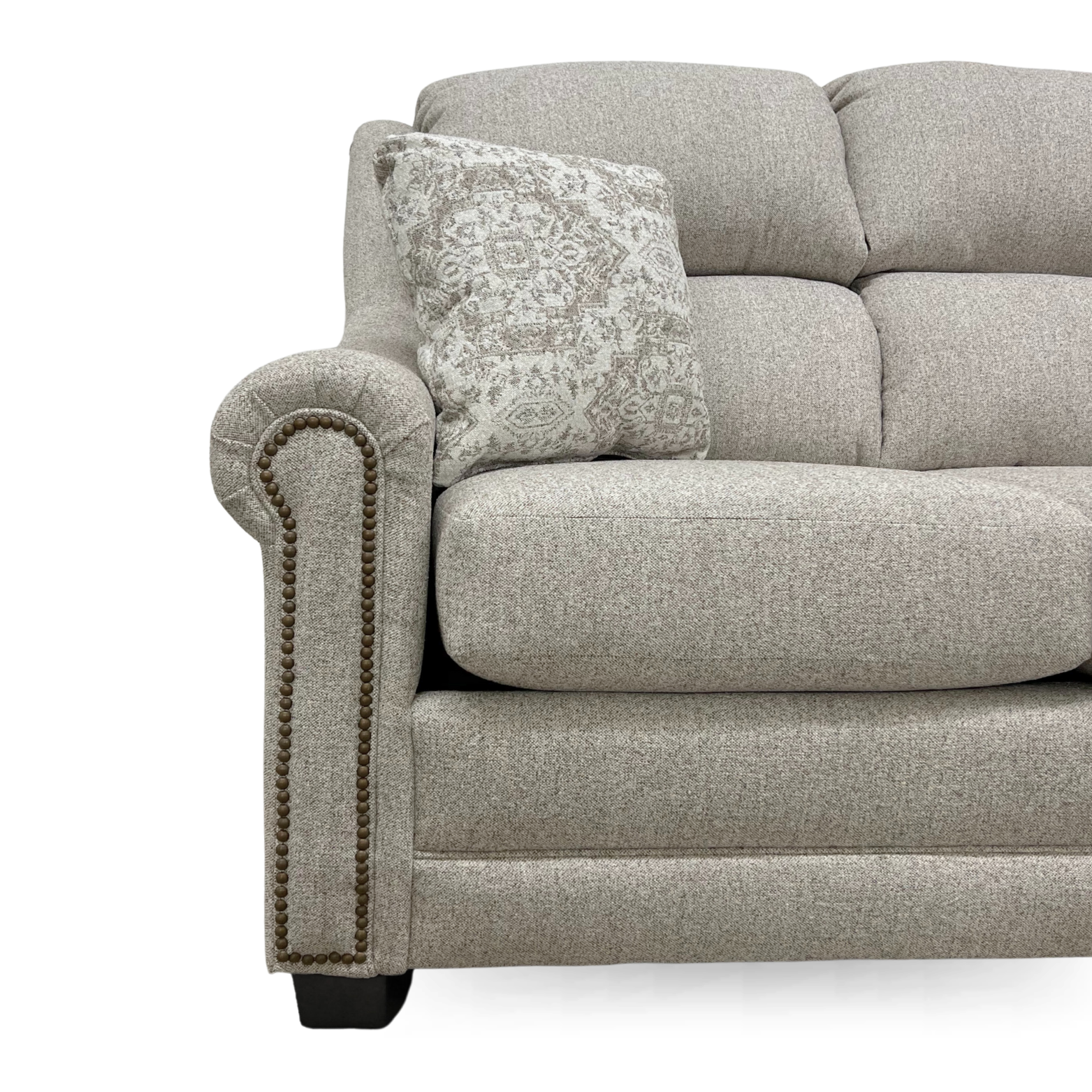 Both classic style and plush comfort unite with our Dawson collection. This silhouette features a bustle back, pyramid block leg, and a simple rolled arm accentuated with an optional antique brass nailhead trim. Available as a sofa, loveseat, chair and ottoman.
