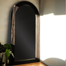 60" arch mirror with a black wood frame, perfect for adding depth and modern style to bedrooms, entryways, or living spaces.