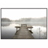 Serene lake and dock wall art featuring soft neutral tones and a peaceful nature landscape.