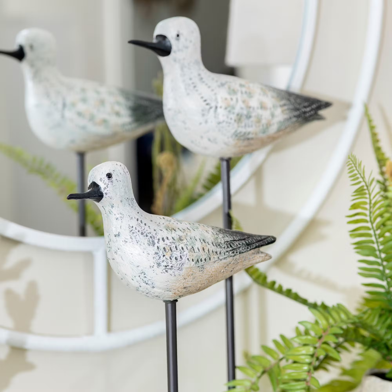 The Coastal Bird Statues come in a set of two in varying heights, made from resin and wood. They are sculpted to look like the beloved sandpipers, from their black beaks to their spotted wings, they will take you to the sights seen at the water's edge as you stroll the beach. These adorable bird statues will add fun and delight to your coastal home decor.