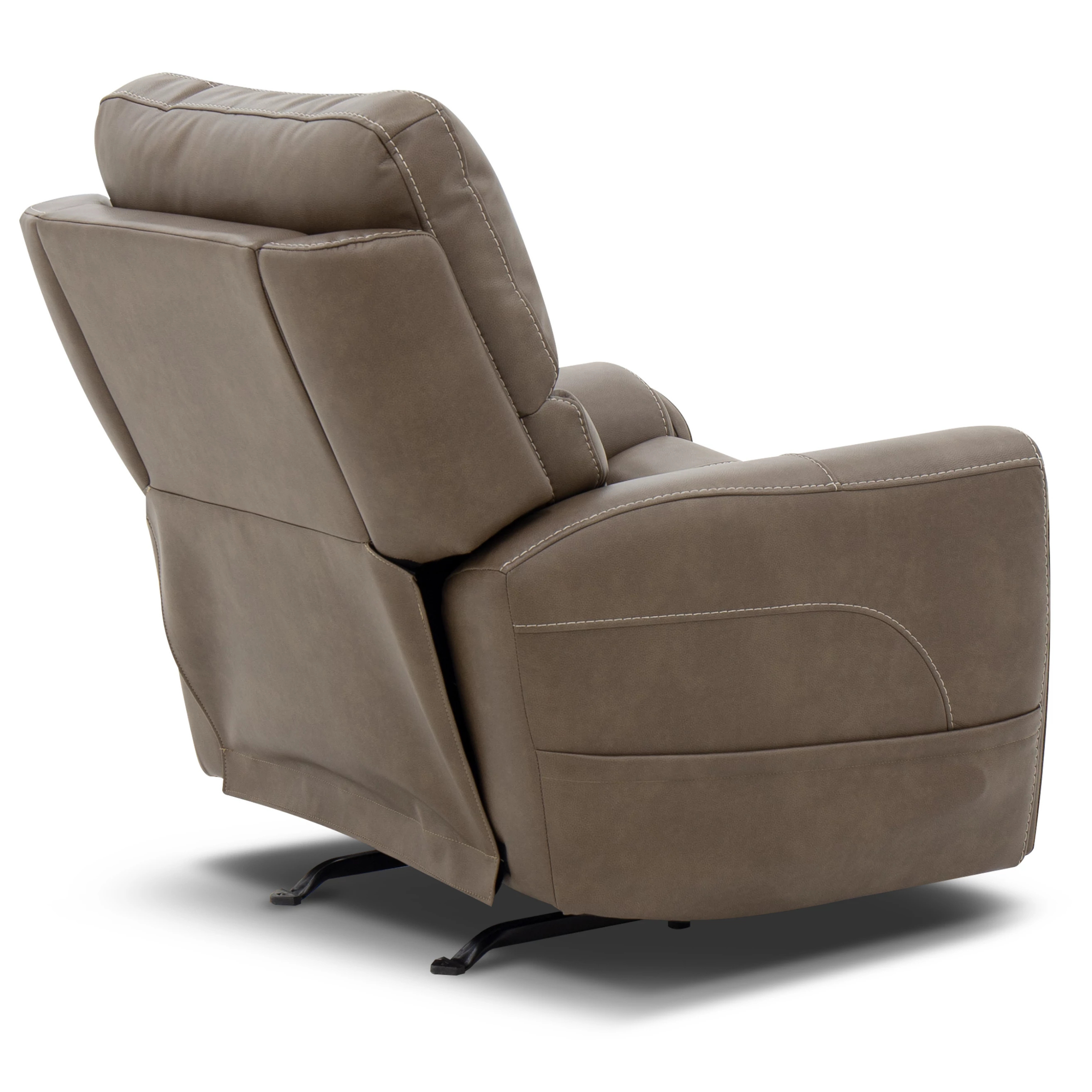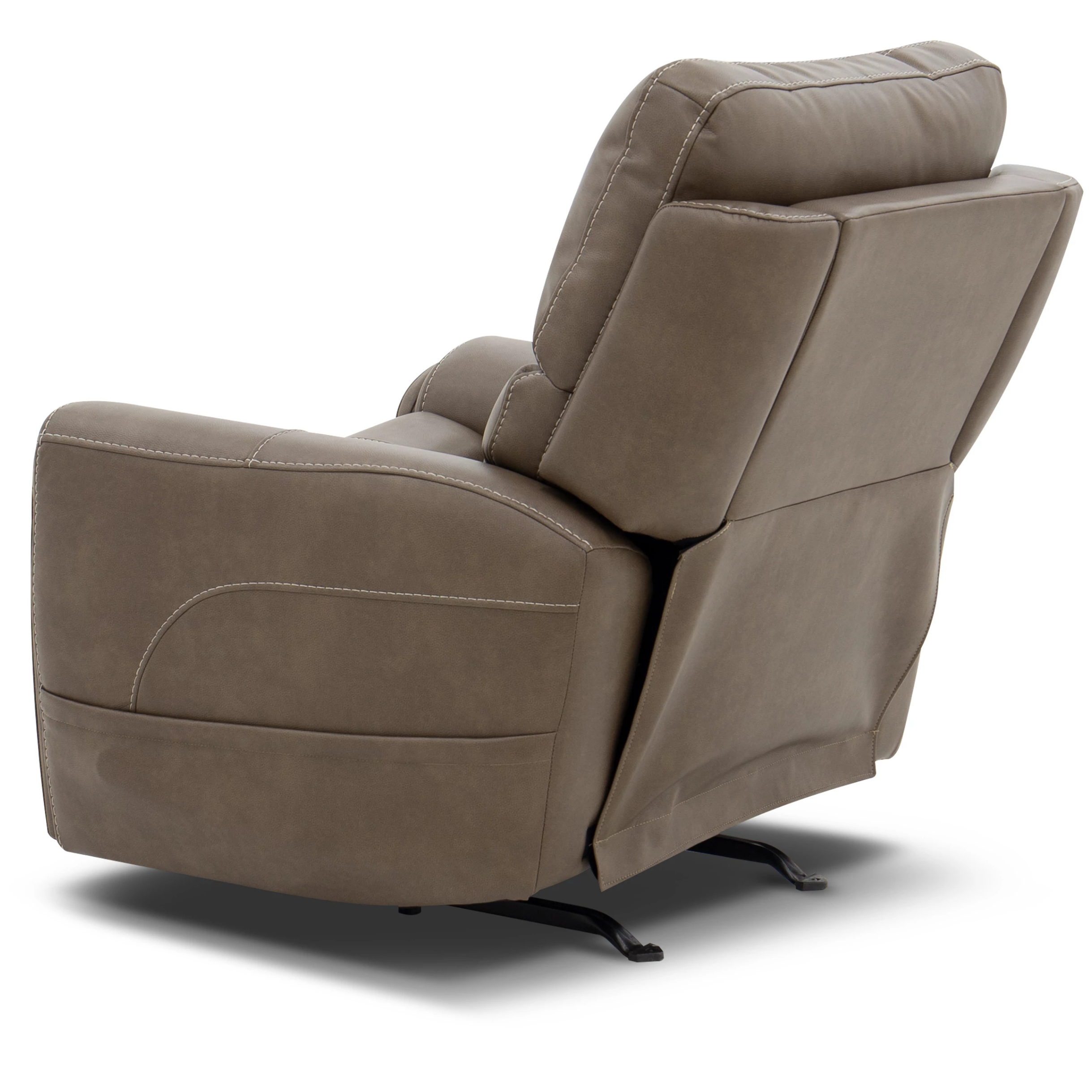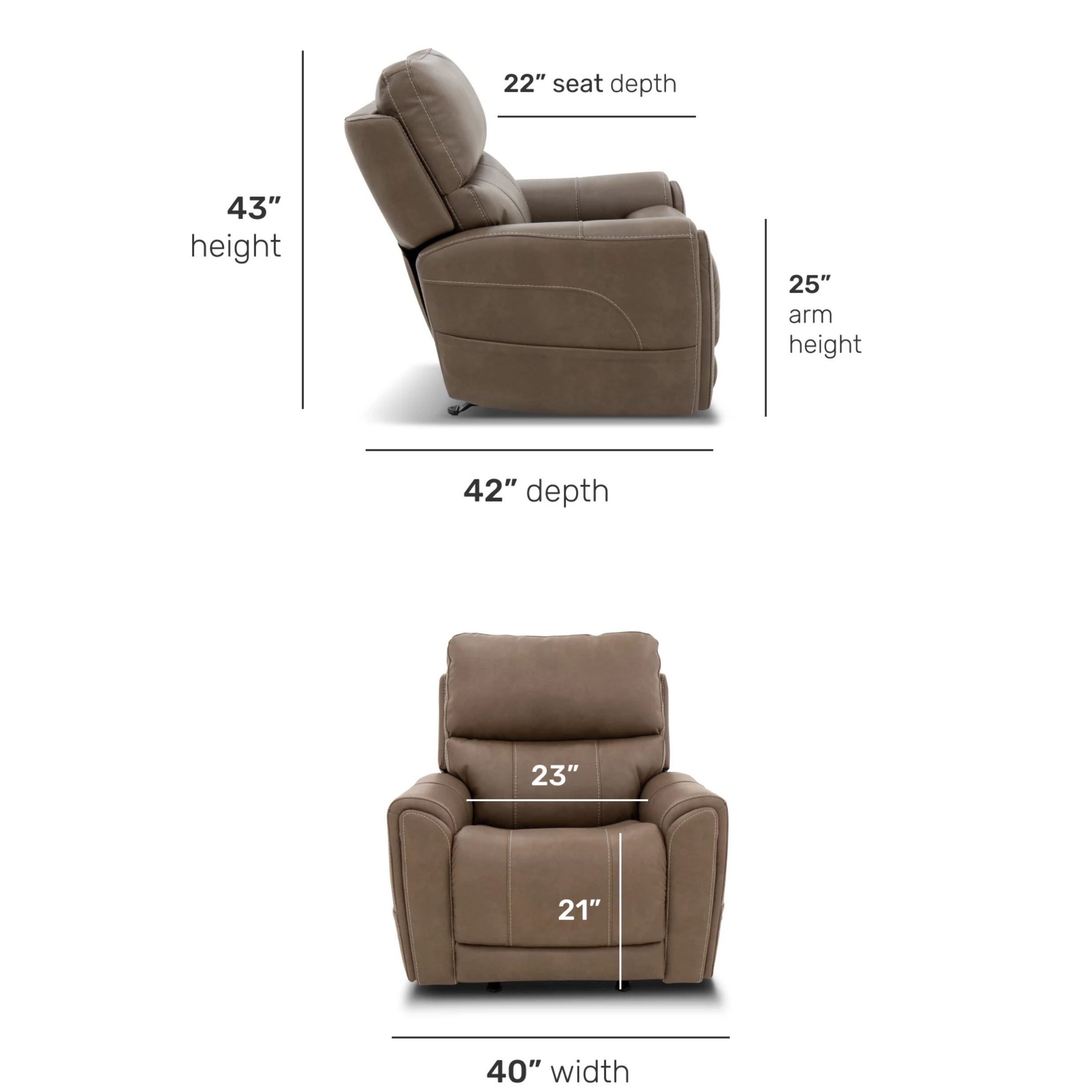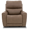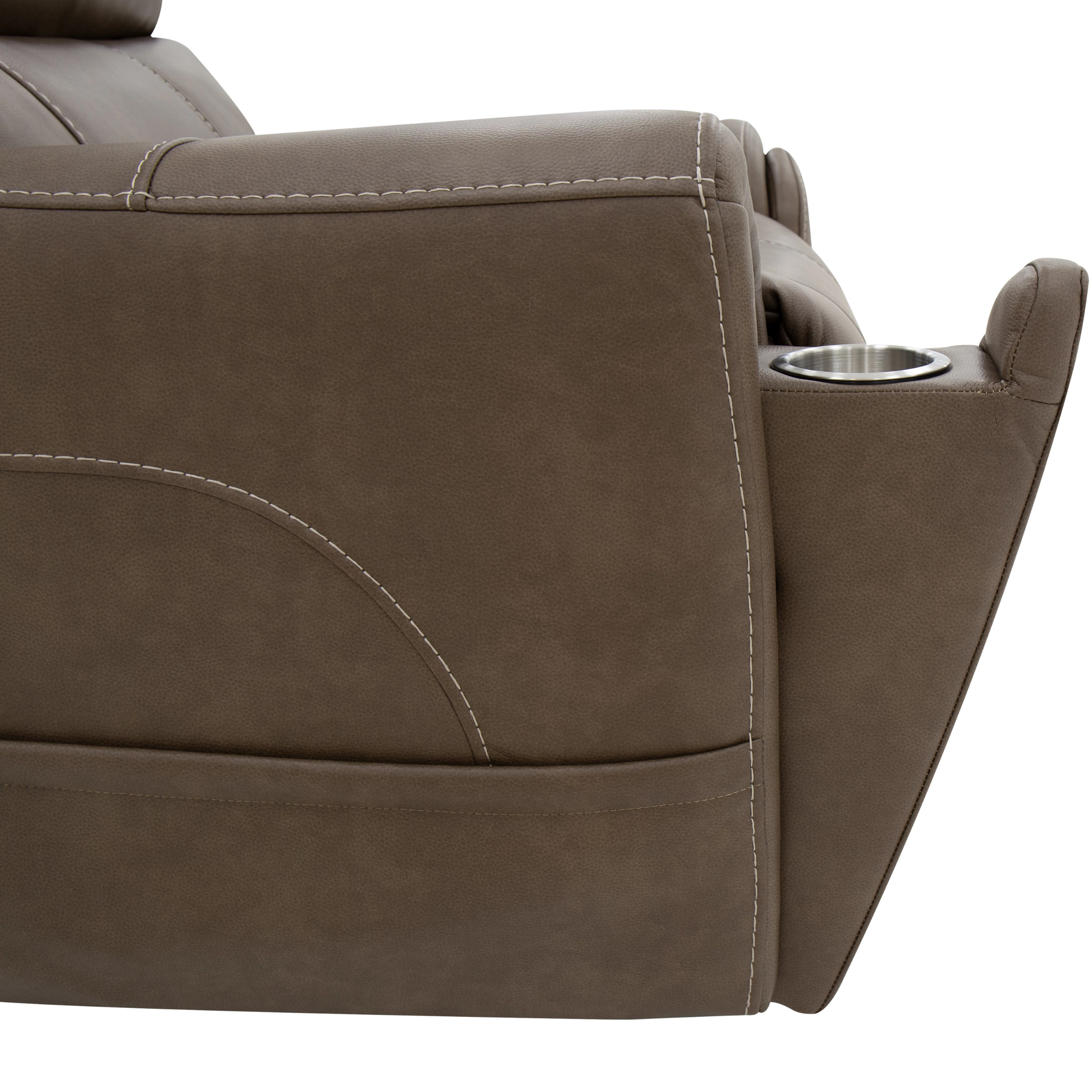 Power up and enjoy secretive perks with the Carter power recliner. This piece features triple power and our Zero Gravity mechanism, allowing you to customize the recline, headrest and lumbar support on both seats, including reclining to a zero-gravity position for the ultimate comfort experience. This recliner will be a statement in your home with its genuine leather look that is a durable, easy to clean fabric in two color choices. Flared arms, a contoured seat and heavy thread stitching details give it a sleek, yet striking look. And it all comes with pop-out cupholders in the arms for discreet storage.