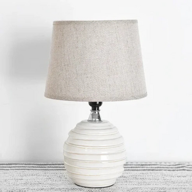 White Offset Stripe Lamp - A chic white lamp with offset stripes, offering a clean, modern look that brightens any room with style.