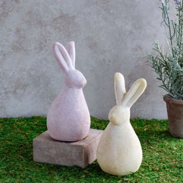 Set of two assorted 7.5" Phat Bunnies in soft pink and yellow, a playful spring accent perfect for shelves, tables, or seasonal décor.