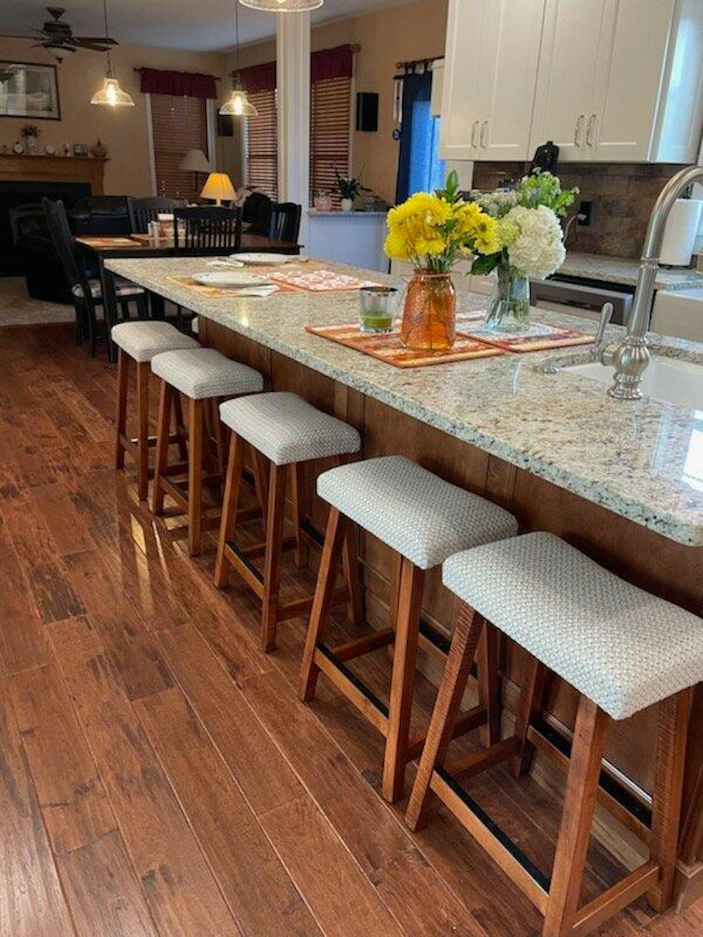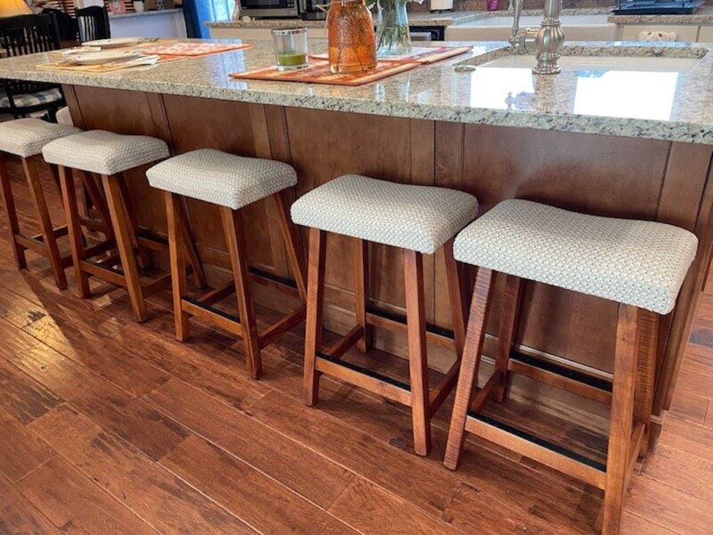 The 24" Upholstered Saddle Barstool offers a comfortable seat with a stylish design, perfect for your kitchen or bar area.
