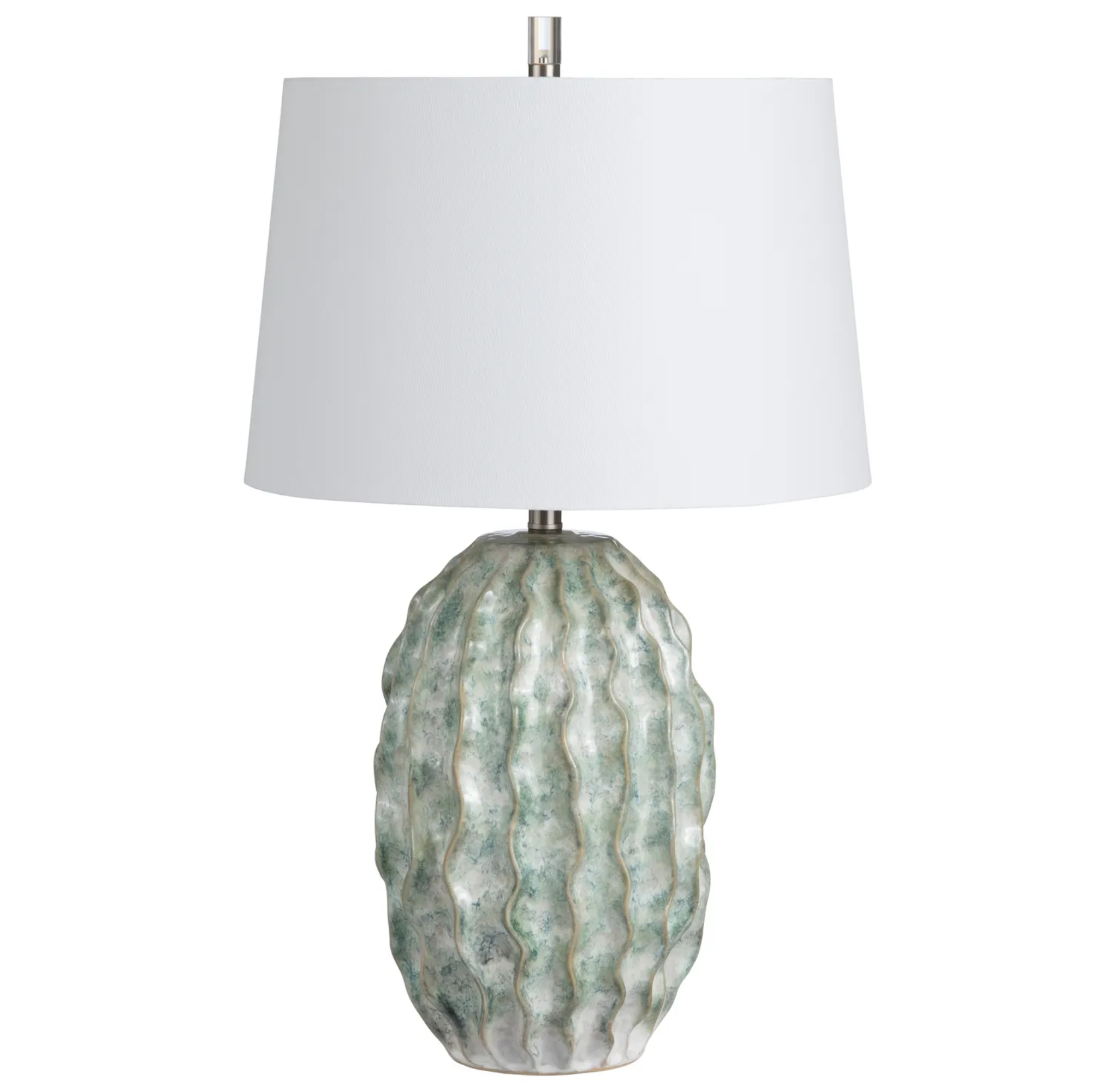 Elevate your space with this 31"H ceramic table lamp, featuring a sleek silhouette, textured finish, and soft fabric shade for warm, ambient lighting.