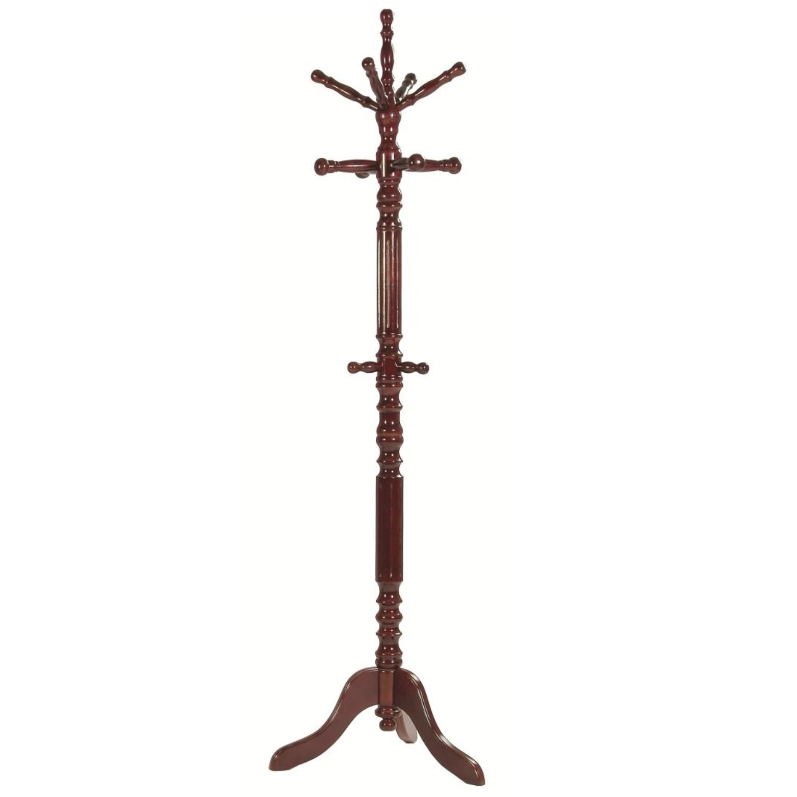 A timeless, solid hardwood coat stand designed for everyday use. Features multiple sturdy hooks for coats, hats, and bags, with a stable base that keeps it securely in place. A functional accent that adds warmth and organization to any entryway, office, or bedroom.