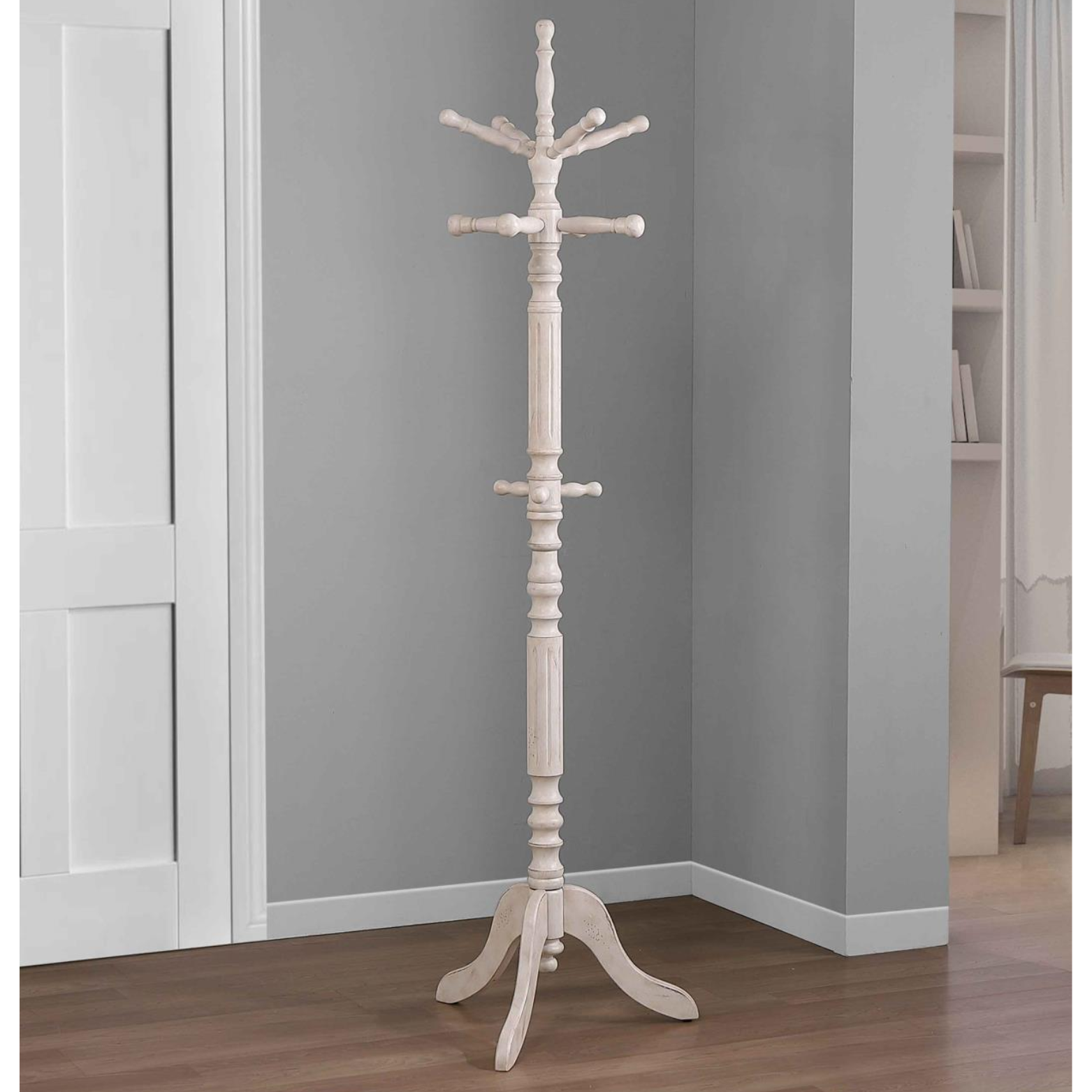 A timeless, solid hardwood coat stand designed for everyday use. Features multiple sturdy hooks for coats, hats, and bags, with a stable base that keeps it securely in place. A functional accent that adds warmth and organization to any entryway, office, or bedroom.