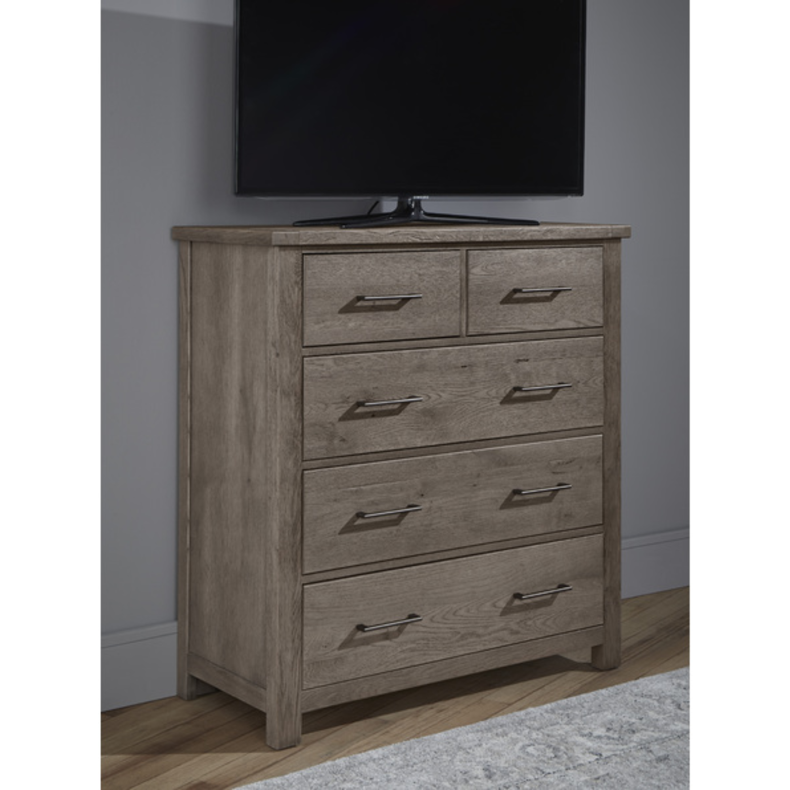 Tall storage dresser with all the splits, cracks, knot holes – all of the aging and refining that can only be provided by Mother Nature herself has 5 drawers and is 46 1/2" tall, perfect place for a TV