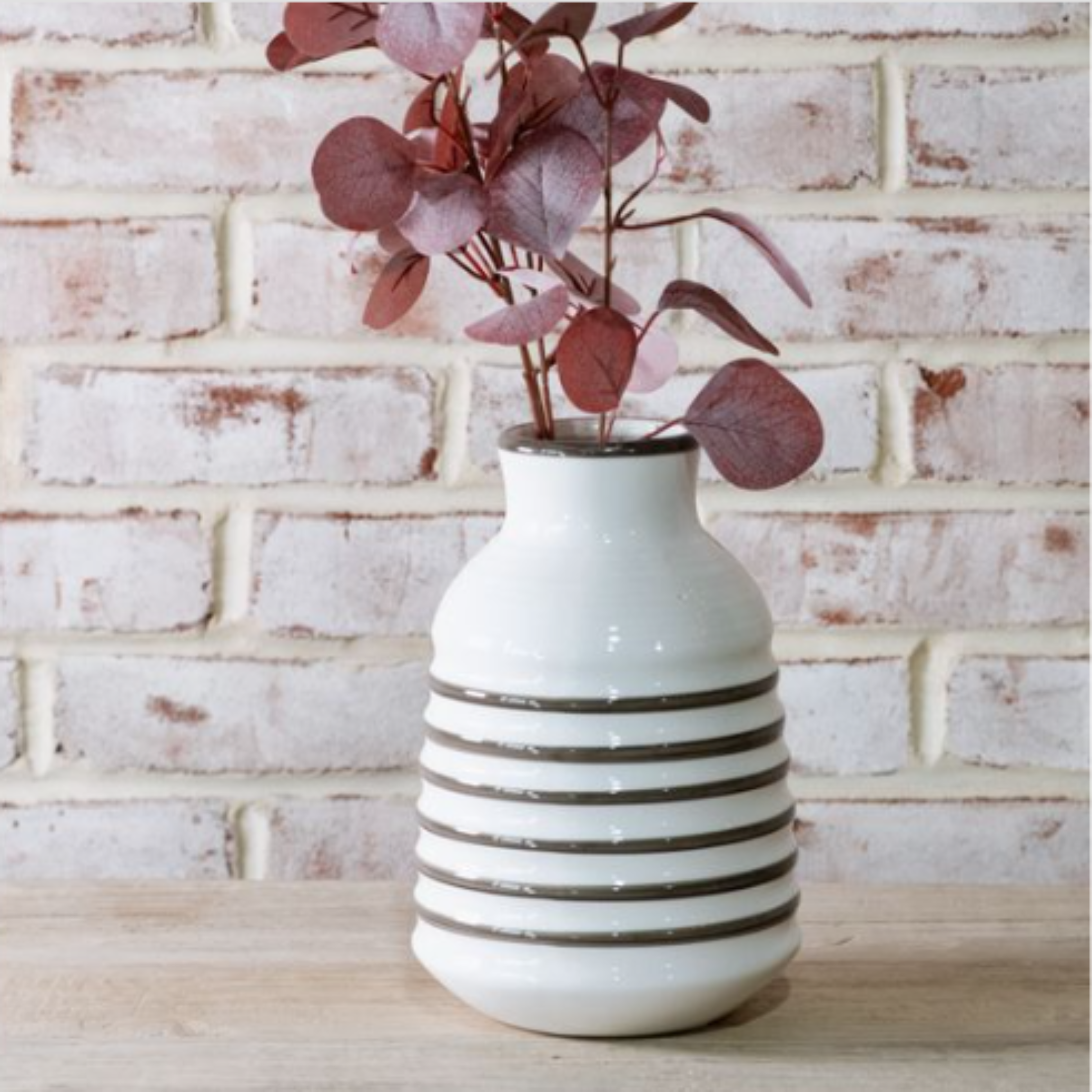 Decorative vase featuring a soft grey and white color palette for a clean, modern look. Perfect for displaying stems or styling on shelves, consoles, or tabletops.