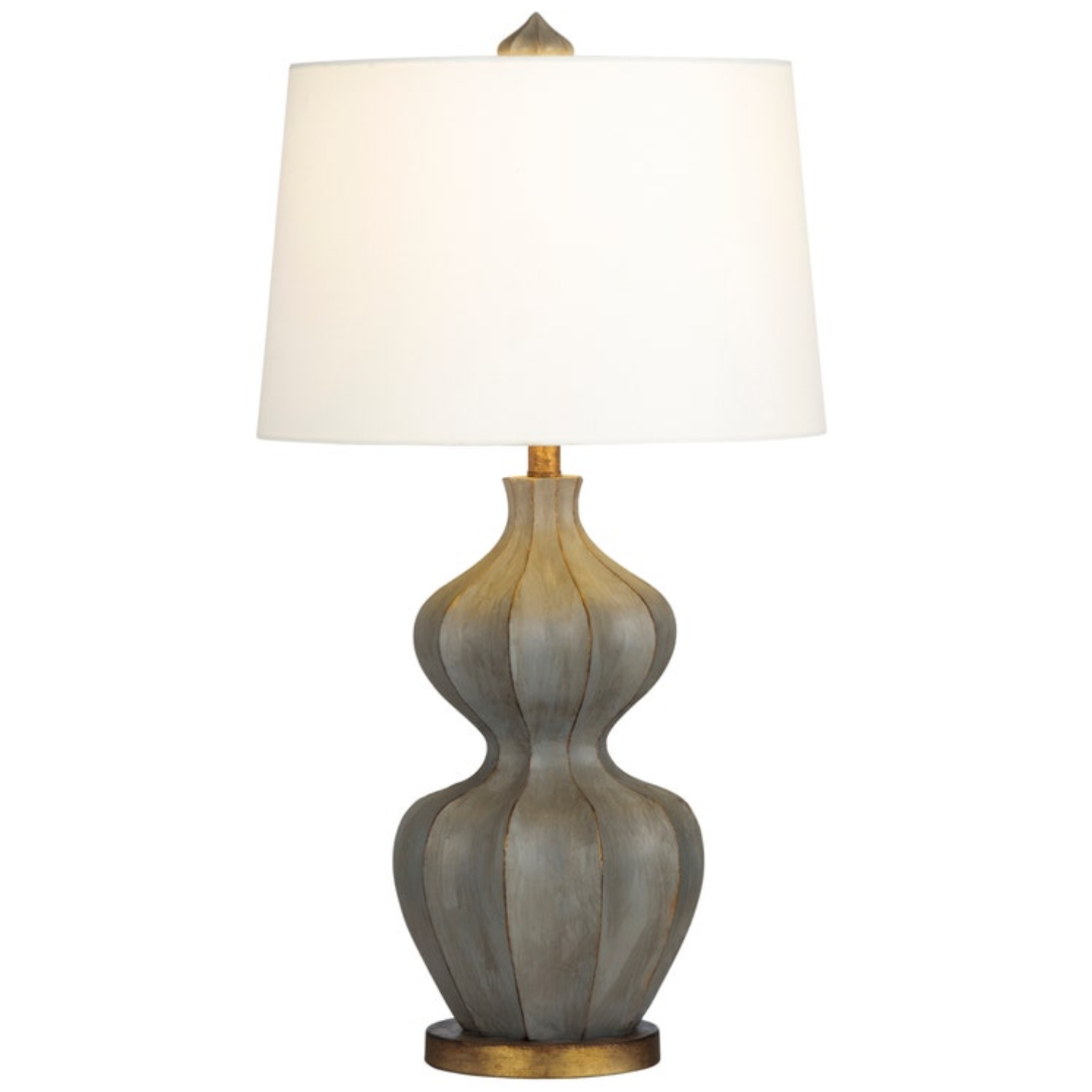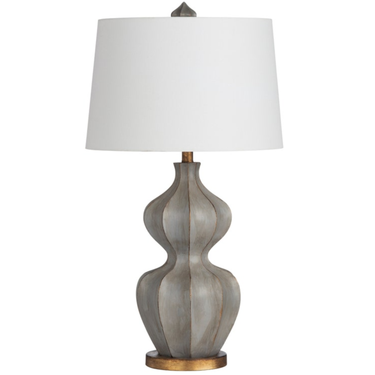 The Garnet Table Lamp is a true masterpiece, featuring a hand-painted dark gray finish adorned with subtle metallic gold highlights. Made from carved polyresin, this exquisite lamp boasts a curved silhouette that is reflective of the organic shapes found in nature. This design is topped with a white linen shade that diffuses a soft, warm light throughout your space, creating an inviting atmosphere that's perfect for relaxation or ntertaining guests.