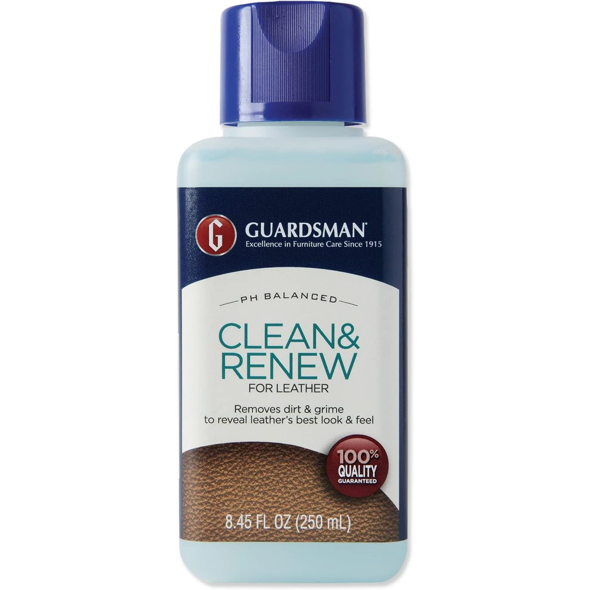 Rejuvenates leather's appearance and leaves a renewed feel. Gently removes soil and surface grime to keep leather and vinyl looking their best. Maintains original appearance and durability. Unlike many leather cleaning products, leaves no residue which can harm leather's flexibility. Contains no dulling waxes, oils, or additives. Made exclusively for Guardsman in Italy by a world leader in leather finishing technology. Should be used with Protect & Preserve for Leather.