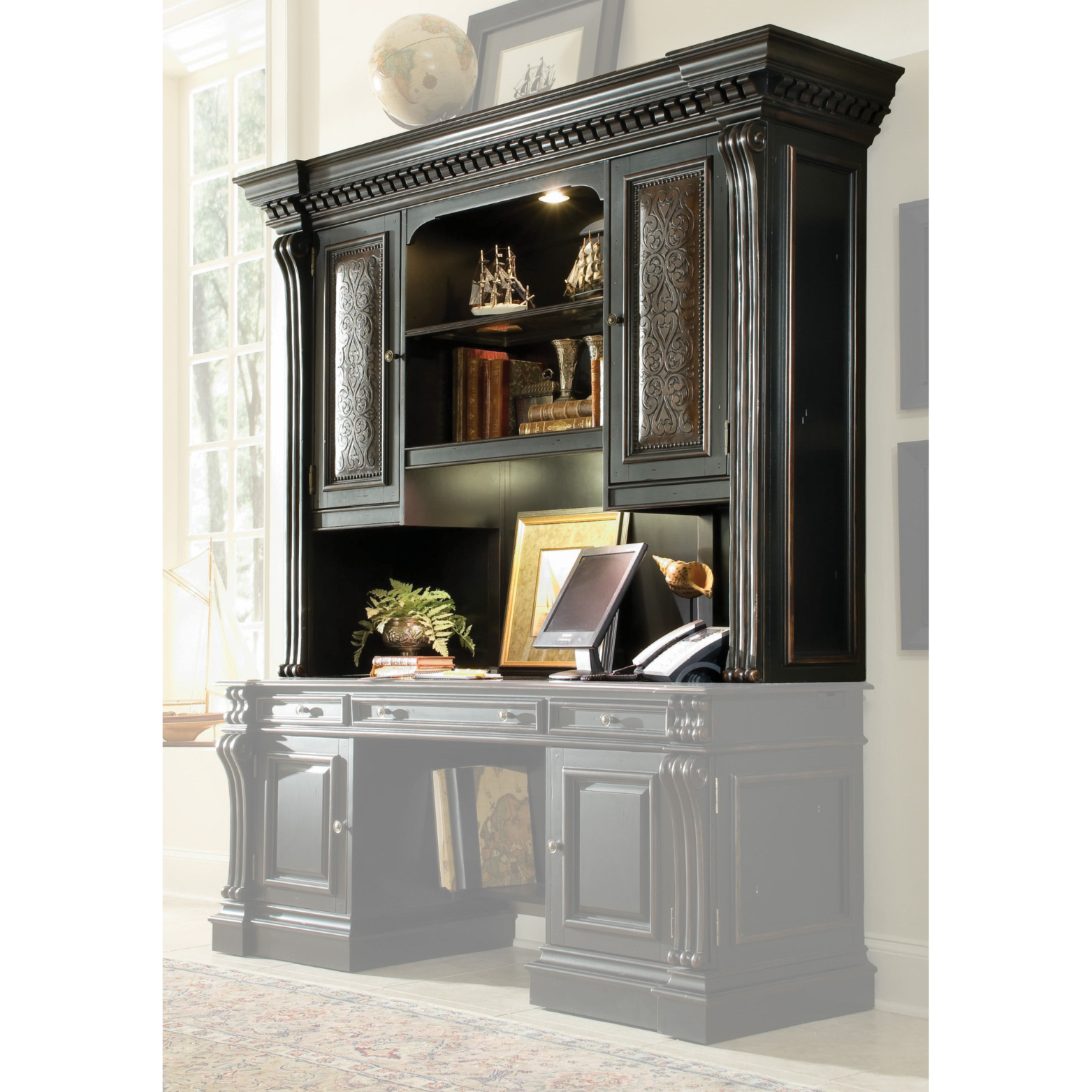 Telluride's black paint finish with reddish brown rub-through, carved leather panels and nail head trim give this collection a rich masculine look.