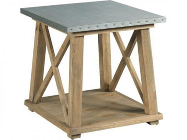 The Junction Truss End Table features an industrial design with a sturdy metal frame and a spacious surface, perfect for adding style and function to your living space.
