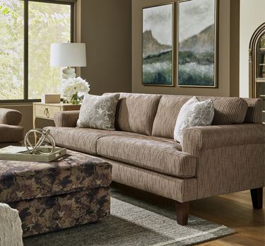 The Lumira Collection invites you to slow down and savor the moment. Its sculpted, wide rolled track arms add a touch of softness to the clean lines, blending classic design with contemporary grace. Framed by subtle piping, the picture frame back design is more than just elegant—it's functional too, cradling adjustable blown fiber cushions that mold to your comfort with every sit.