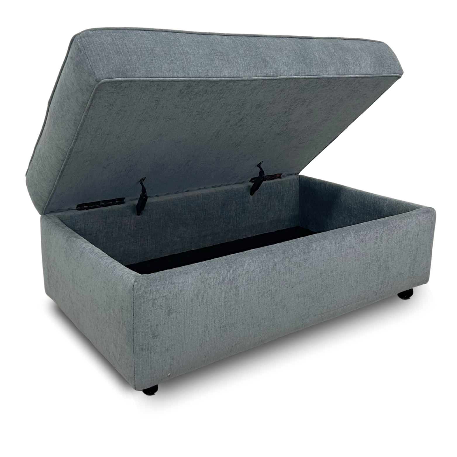 The Malibu Storage Ottoman adds comfort and hidden storage to any room. Its cushioned top lifts to reveal space for blankets or everyday items, and its clean, tailored design blends easily with any décor. Choose from a variety of fabrics to make it your own.