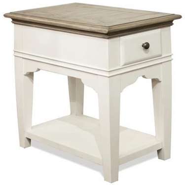 The Myra Chairside Table offers a sleek design with ample storage, perfect for placing beside your sofa or chair.